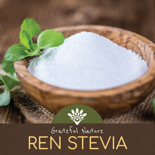 Stevia ekstrakt er 100% urtebasert og kommer fra Steviaplanten. 99 % REB-A stevia er mellom 200 - 300 ganger søtere enn sukker og tilsvarer 1/2 kg sukker pr. teskje. Produktet inneholder ingen konserveringsmidler.